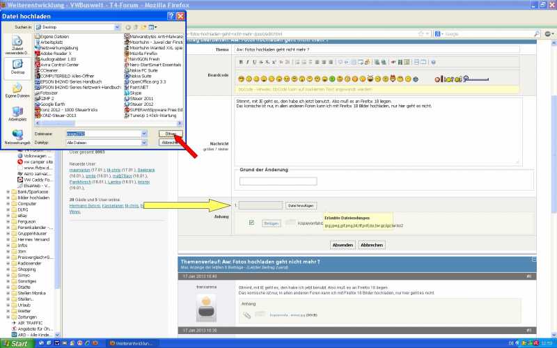 Firefox 18 Probleme Bilder hochladen