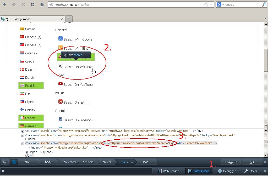 Seit etlichen neuen qtl- (derzeit Version 15) und FF-Versionen (derzeit 18.0.1) funktioniert das bei mir aber nicht mehr, ich komme immer nur zur englischen Wikipedia. Sind da neue Anpassungen in about:config erforderlich?