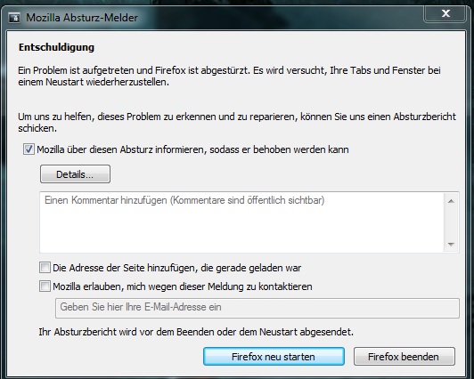 So sieht im Übrigen die Absturzmeldung immer aus: