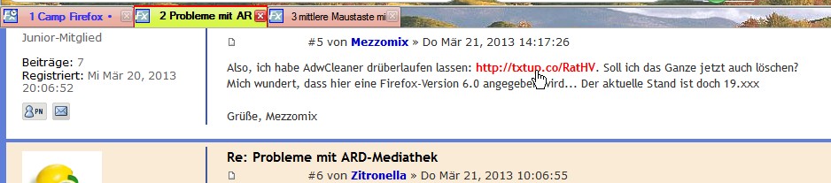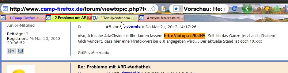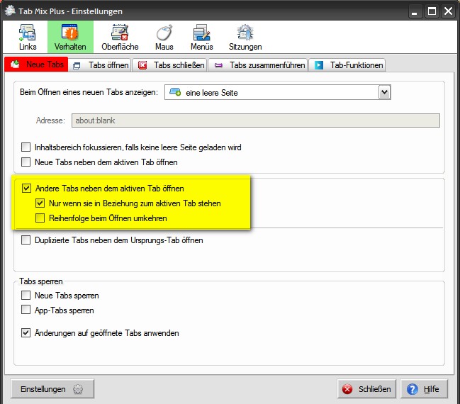 ..hast du mal mit der 3. (mittleren) Maustaste so einen Link angeklickt? Bei mir öffnet sich der Link dann nämlich in einem neuen Tab... Wenn dies bei dir anders ist, schaue in die Einstellungen oder kontrolliere die ggf. installierte Maussoftware..