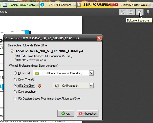 Vielen Dank für Ihre Antwort. Es stimmt, dass die Datei in Firefox geöffnet wird (Seite 1 bis 8). Das war auch bei mir der Fall. Nur wenn ich diese Datei speichere wird diese als *.pdf.htm gespeichert (nicht als *.pdf). Oder muss ich beim speicheren auf etwas achten? Wenn ich als *.pdf speichern kann, was ja nicht der Fall ist, konnte sein dass ich dieses auch mit Adobe-Reader öffnen kann?