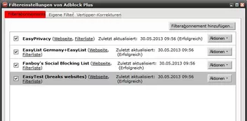 Andere Filterabos in den Adblock Einstellungen müssen dann natürlich entfernt werden.