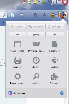 Wenn ja, ändere ihn mal so:Code@-moz-document url(chrome://browser/content/browser.xul) { #PanelUI-mainView {min-width: 300px! important;} #cut-button {min-width: 95px! important;} #zoom-out-button {min-width: 95px! important;} #privatebrowsing-button {min-width: 100px! important;} }Werte bei #PanelUI-mainView und #privatebrowsing-button noch anpassen bis es passt, im Moment ist der Wert zu hoch.