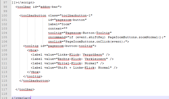 • Habe den unteren Teil umgeschrieben; nun ist der Button in der Addon-Bar