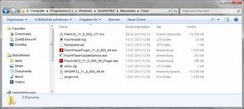 Und about:plugins liefert auch nur das "C:\windows\SysWOW64\Macromed\Flash\NPSWF32_11_8_800_94.dll"