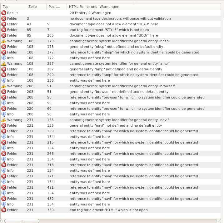 Die Anzahl der Fehler ist ja keine Aussage. Die Bedeutung eines Fehlers ist relevant.Der Validator meint …
