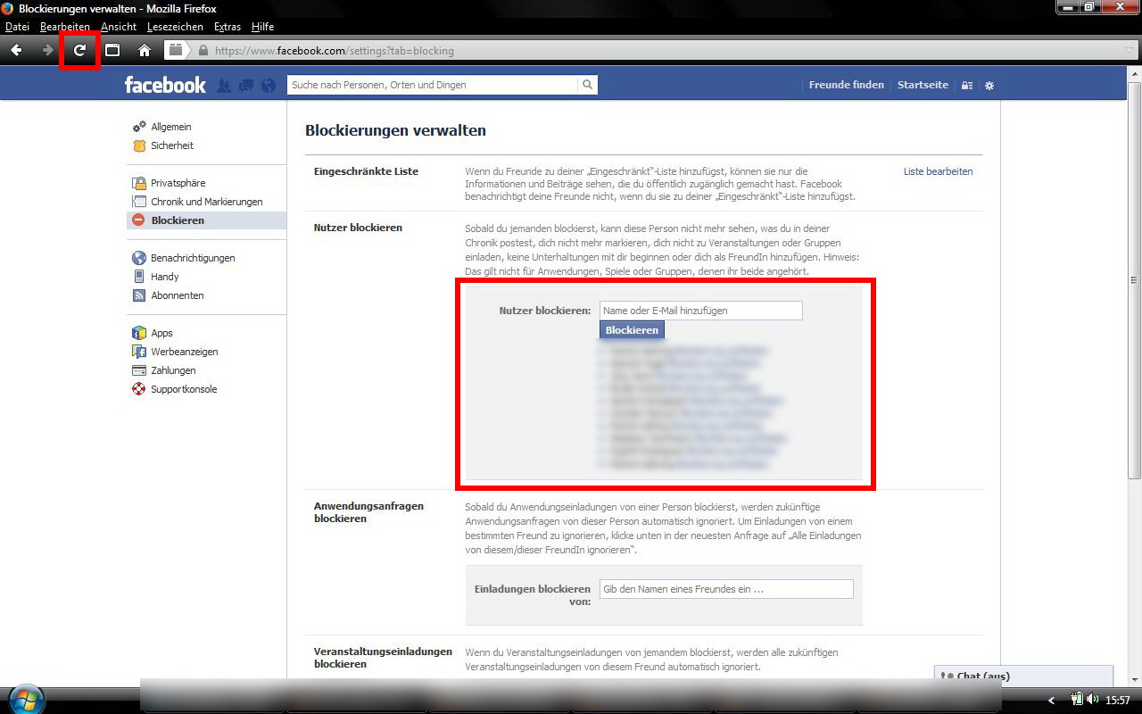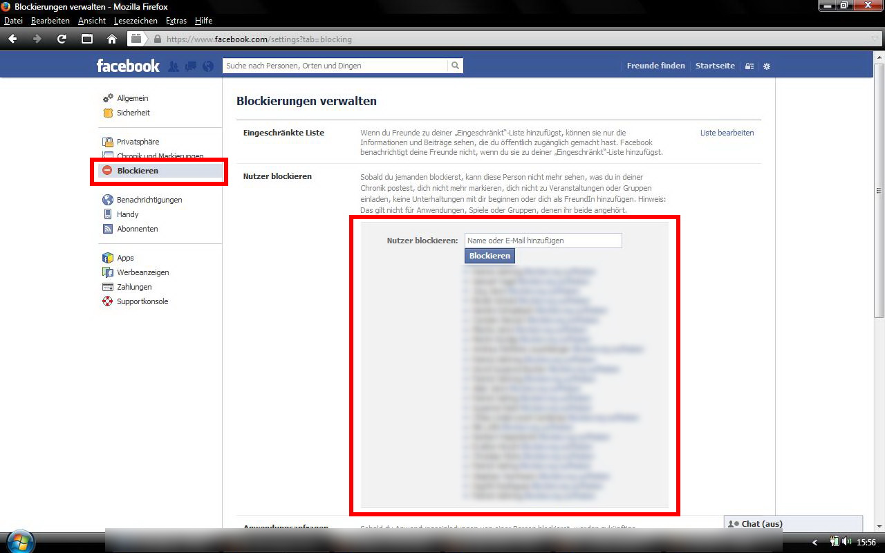 im August bat ich um Hilfe, auf Facebook blockierte Personen auszublenden: