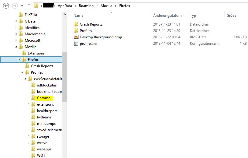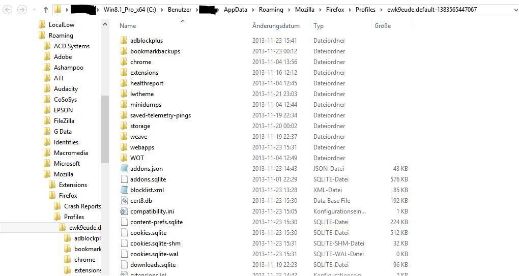 Wo landest du, wenn du oben über Hilfe..Informationen zur Fehlerbehebung..Profilordner..Ordner anzeigen klickst? -