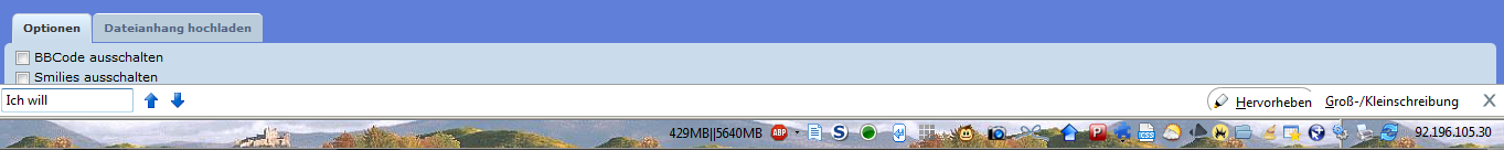 seit Version 25 ist das Suchfeld (Strg + F) verändert. Leider ist das x zum schließen verdeckt durch ein anderes Symbol. Daher muss ich Firefox wieder auf den alten Stand zurück bringen. Wie kann ich das alte Suchfeld wieder herstellen. Ich kann das x nicht an dieser Stelle lassen, da dort ein anderes Symbol ist.