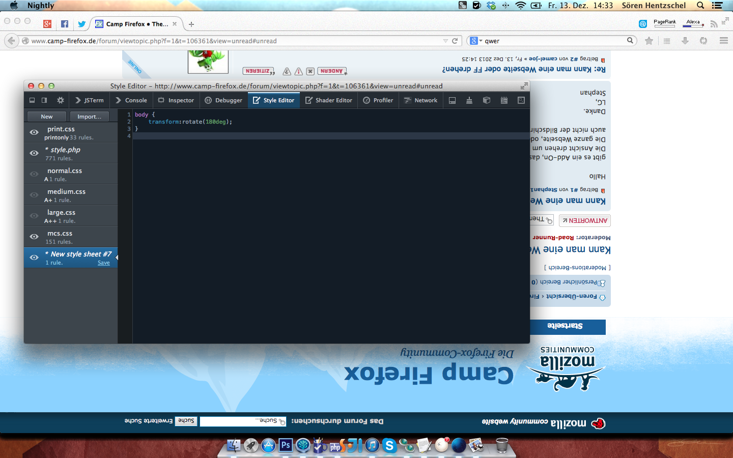 Die ganze Webseite, oder von mir aus das ganze Firefox soll gedreht werden, nicht nur ein bestimmtes Bild, und auch nicht der Bildschirm!