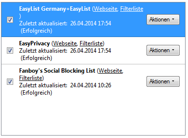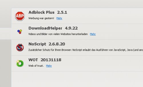 Und ich habe die Add-ons Adblock Plus 2.5.1
