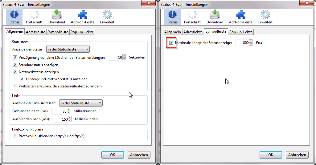 (Im für diesen Screenshot genutzten Profil ist zusätzlich die Erweiterung Status4Evar installiert.)