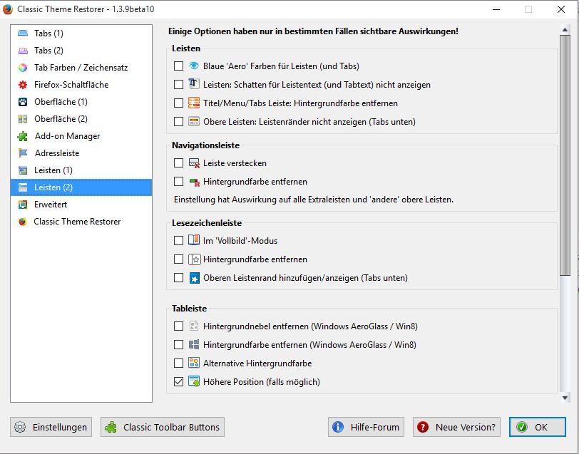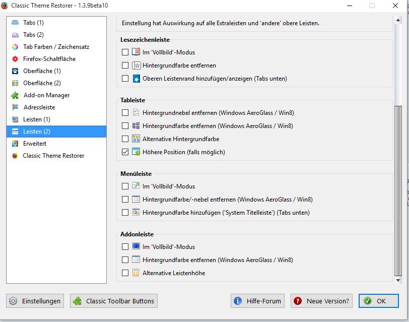 Hier das Änderungsprotokoll zu CTR-1.3.9 beta 10. Bei der Einstellung zu Windows 10 bin ich mir unsicher, worum es da genau geht, da ich diese Einstellung mangels Win 10 nicht überprüfen kann: