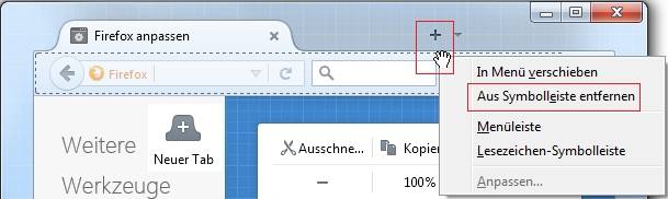 Oder Firefox anpassen + Aus Symbolleiste entfernen / Button [Neuer Tab]