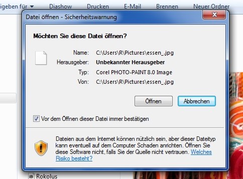 Datei öffnen Sicherheitswarnung