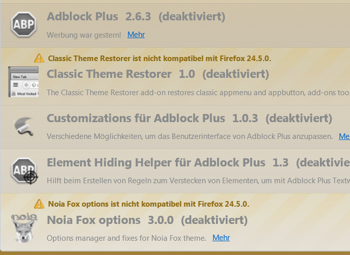 Tatsächlich: Nach dem Auto-Update installiere ich wieder den FF 28. Keine der vorhandenen Erweiterungen wird beanstandet.