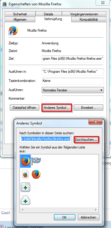 wie kann ich bitte (als Laie) ein alternatives Firefox-Icon so in den Browser einbinden, dass dieses ansatt dem originalen Icon von Firefox (Fuchs/Weltkugel) in der Taskleiste und für Desktopverknüpfungen verwendet wird?