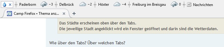 Um Forecastfox in der Statuszeile zu sehen, musst du erst einmal eine Erweiterung installieren, um erst einmal eine Statuszeile zu haben. Gut, wenn du sowieso CTR nutzt, dann mag es gehen. Aber die Gismeteo-Leiste kann man auch ausblenden.