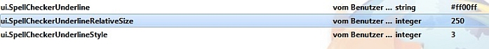 Ich suche nun schon den ganzen Tag, ob es eine Möglichkeit gibt, die rote geschlängelte Linie der Rechtschreibekorrektur in z.B. eine Gelbe zu ändern. Ich habe eine Farbsehschwäche und kann bei einem dunklem Hintergrund die Linie nicht erkennen.