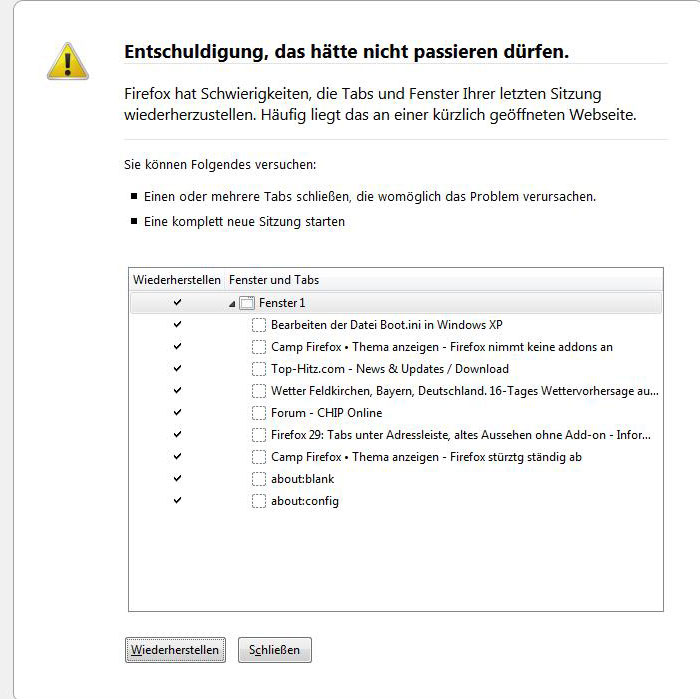 Firefox stürzt ständig ab