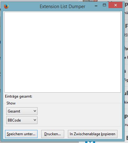 Obwohl Extension List Dumper 1.15.2 neu installiert wurde (FF 30.0) zeigt es keine Daten an wenn ich auf "Auflisten" klicke!