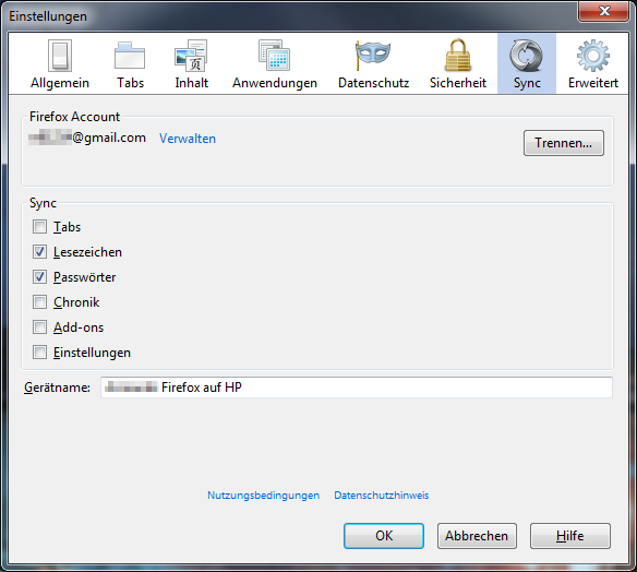 Leider kann ich kein Benutzerkonto für Sync einrichten, da ich dazu in meinem Firefox-Menu der Punkt 'Sync einrichten oder Sync anmelden', (wie im Mozilla-Video gezeigt wird), gar nicht bekomme. In meinem Menü steht unter dem Enwicklerwerkzeug-Symbol nur noch eine Schaltfläche mit meiner Mailadresse und darunter die Schaltfläche 'anpassen'