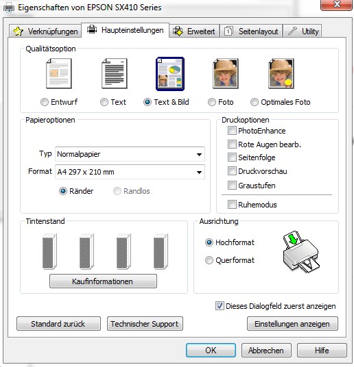Drucken, Druckvorschau,Druck bearbeiten und Seite einrichten.