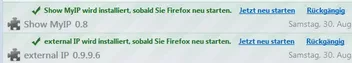 Ich bekomme hier in einem neuen Profil den Eintrag (Samstag.30.Aug) nicht angezeigt.Und ein weiterer Unterschied besteht darin das (Mehr Details über dieses Add-on anzeigen) bei Dir nicht vorhanden ist.