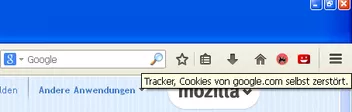 • So sieht das bei mir aus. Links neben dem Balkensymbol sind Self-destructing Cookies und Youtube-Unblocker.