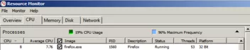 • Firefox läuft hier auf dem Dualcore (CPU 1) mit <10 Prozent Last. Bei ~50 Erweiterungen kann das aber auch normal sein. Wenn die Scripte in Firefox gestört werden oder fehlerhaft sind, dann kann das auch mal mehr werden. Daher erwarte ich immer noch die Beantwortung meiner 3 Punkte, alles andere ist doch erst Mal uninteressant.