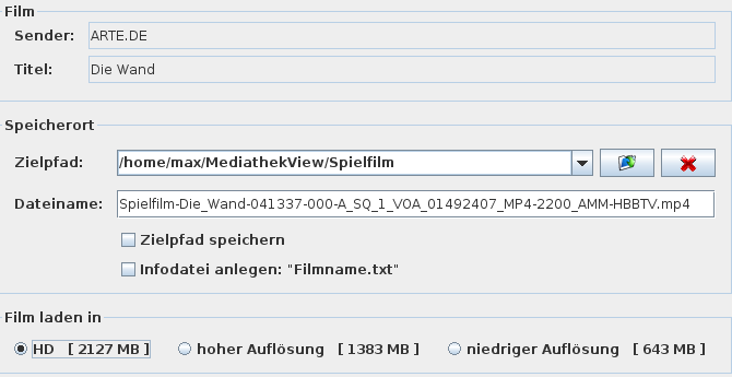 Die Filmqualität von "Die Wand" würde ich weder beim direkten Link von Zironella, noch beim MediathekView-Link als HD-Qualität bezeichnen.