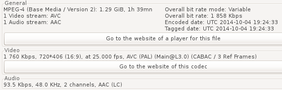Im MediaInfo (Wikipedia) vom gespeicherten Video.