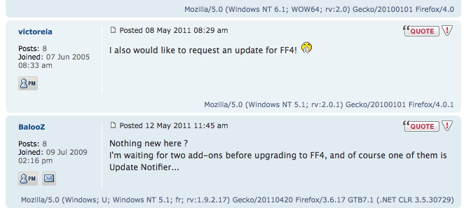 Ich hätte gern die Browserversion & OS (user agent) im Thread wie bei Mozillazine.