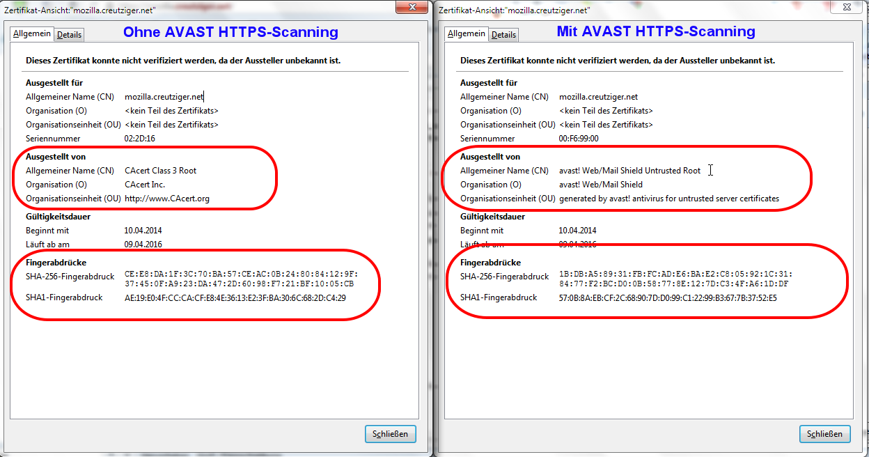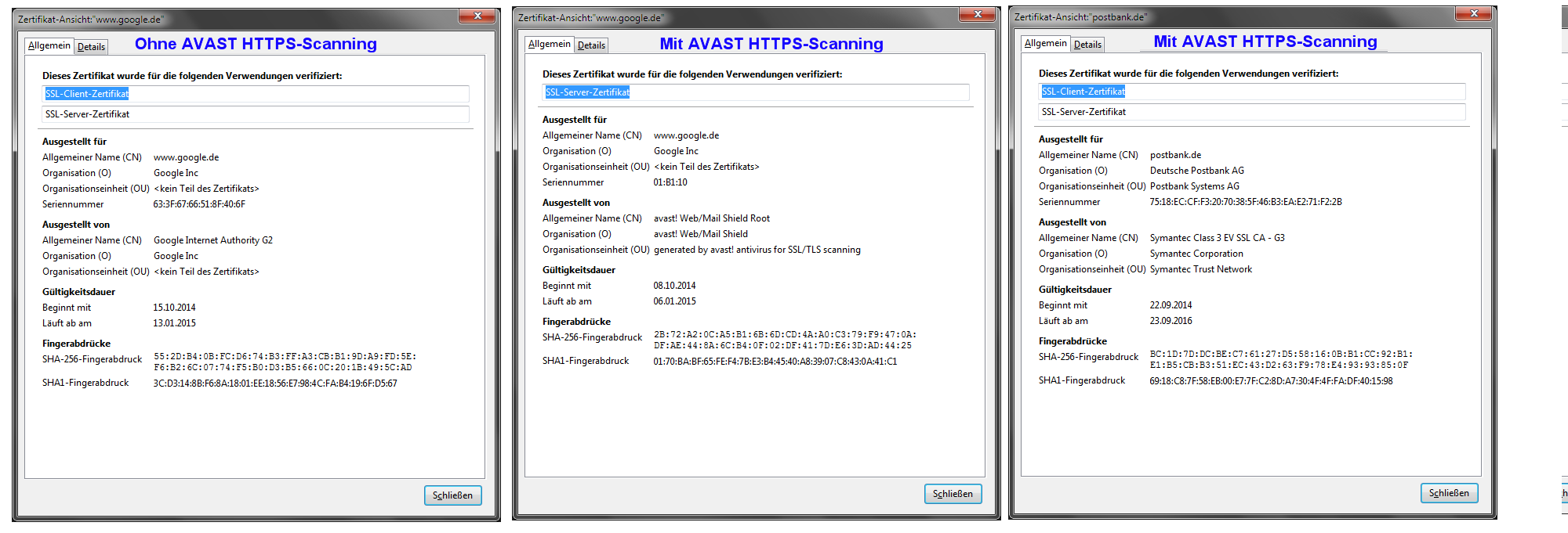 Neu ist, auch in der Free Version, das HTTPS-Scanning. Dieses ist standardmäßig aktiviert, falls man AVAST neu installiert oder ein Update macht. Zu finden unter: Einstellungen :arrow: Aktiver Schutz :arrow: WebSchutz--Anpassen :arrow: HTTPS-Scanning aktivieren