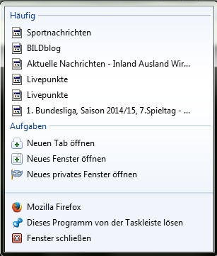 Im Startmenü habe ich den Firefox auch drin, aber da zeigt er mir nicht mehr bei Häufig die Logos deren Webseite an.