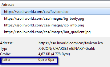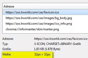 In der Seiteninformation wiederum steht zwar der Pfad zur Favicon.ico, die Vorschau ist aber leer.
