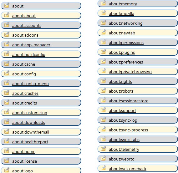 ich nutze, um mir die about:Befehle anzeigen zu lassen, die Erweiterung: What about.