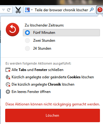 Hierbei ist der zu löschenden Zeitraum standardmäßig auf 5 Minuten eingestellt. Wo kann man hier drehen, dass immer z.B. 2 Stunden oder 24 Stunden per default ausgewählt sind?