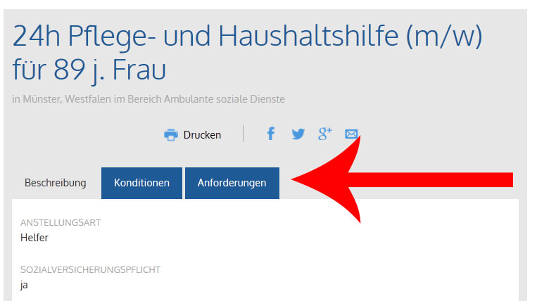 2.) "Stellenangebot: 24h Pflege- und Haushaltshilfe (m/w) für 89 j. Frau Münster - Jobs meinestadt.de:" wählen