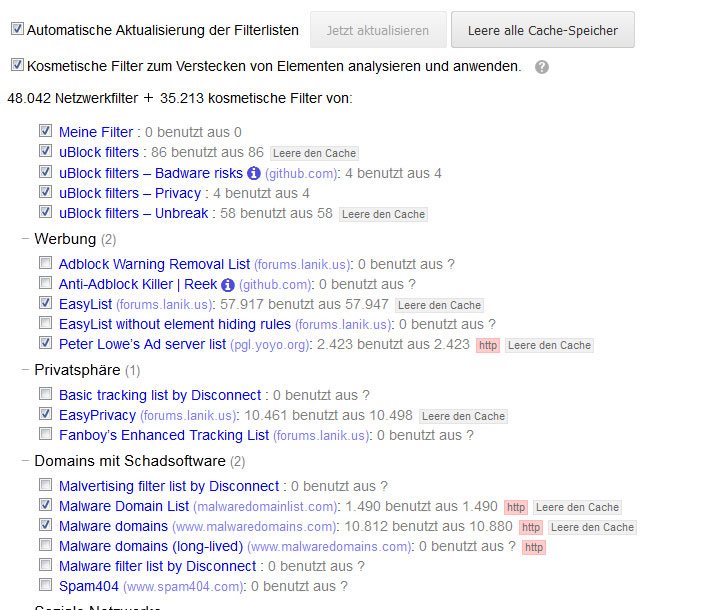 BTW: Raymond Hill aka gorhill, der Entwickler von uBlock origin ist nun auf Mozillazine vertreten... wer des Englischen mächtig ist, kann dort möglicherweise direkte Unterstützung vom Entwickler erfahren...
