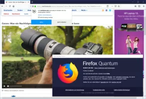 • Firefox 62.0.2 mit FirefoxLoader.exe gestartet zeigt mir, zum Beispiel [Kosmetische Filter] Diese Webseite verwendet Cookies, bereits erfolgreich ausgeblendet ist.