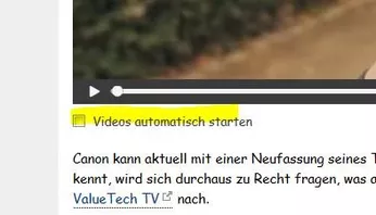 • Du könntest auch unter about:config den Wert media.autoplay.enabled auf false setzen um jegliches Autoplay unter Firefox 62 zu verhindern.