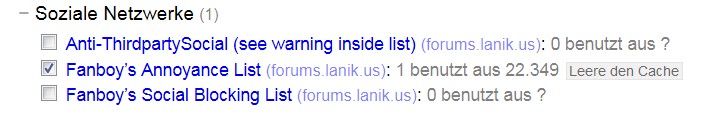 Du hast eine der Listen aktiviert?