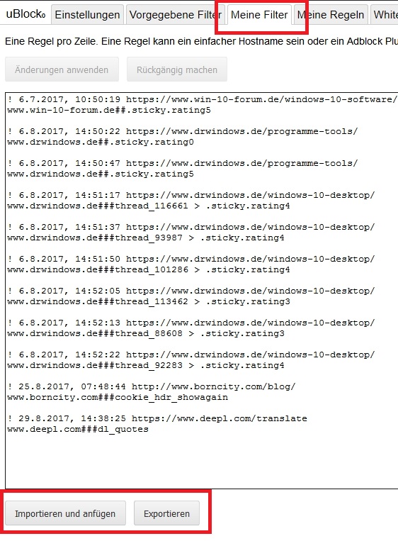 habe ublock origin auch nochmal drüber installiert und seit dem scheint es zu klappen. aber meine eigenen filter waren alle weg. ich hatte noch ein back up von vor nem halben jahr. besser als nix, aber trotzdem ärgerlich! und ublock origin arbeitet irgendwie träger als vorher hab ich den eindruck.