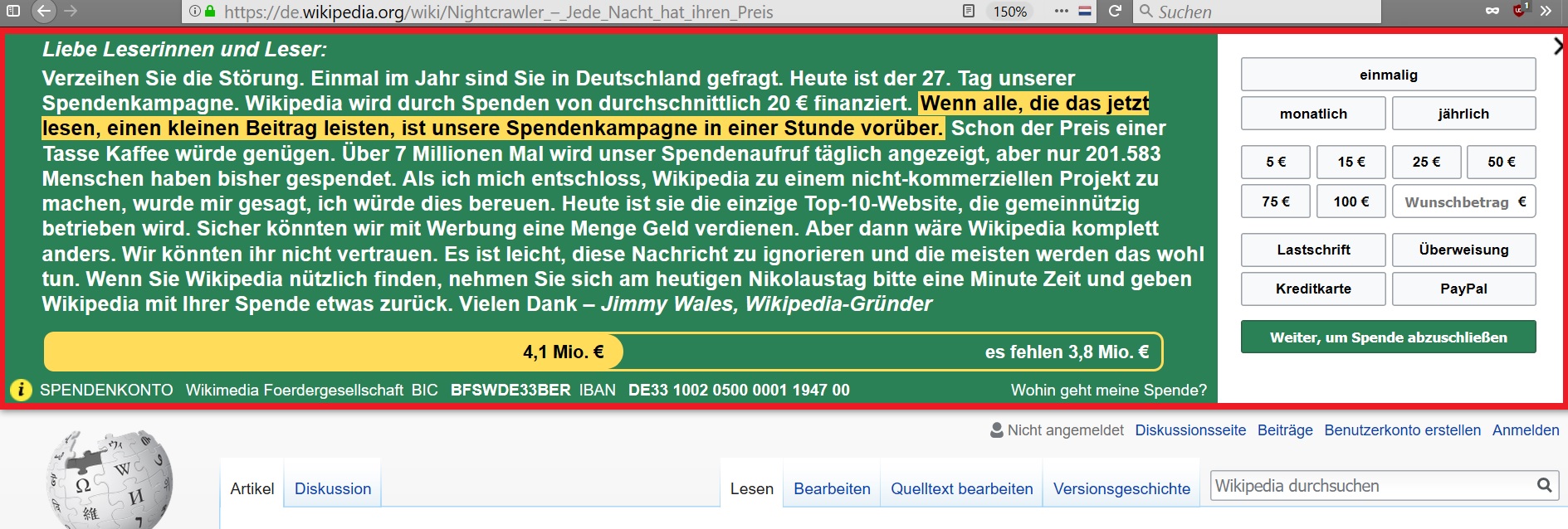 Hat jemand einen Wikipedia-Filter? Diese Bettelei nervt total und ist sehr aggressiv zugleich..