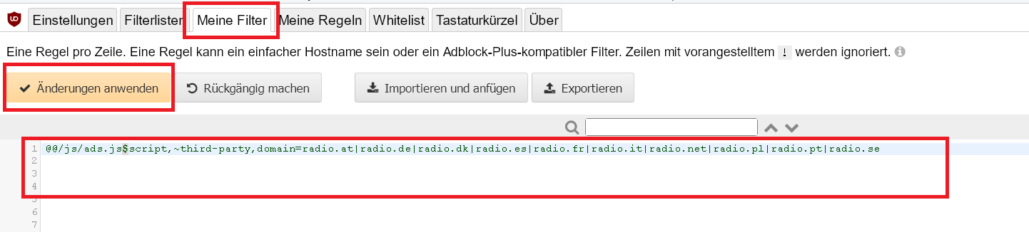 2) Füge ich den ersten Code zu "Meinen Filtern" hinzu?