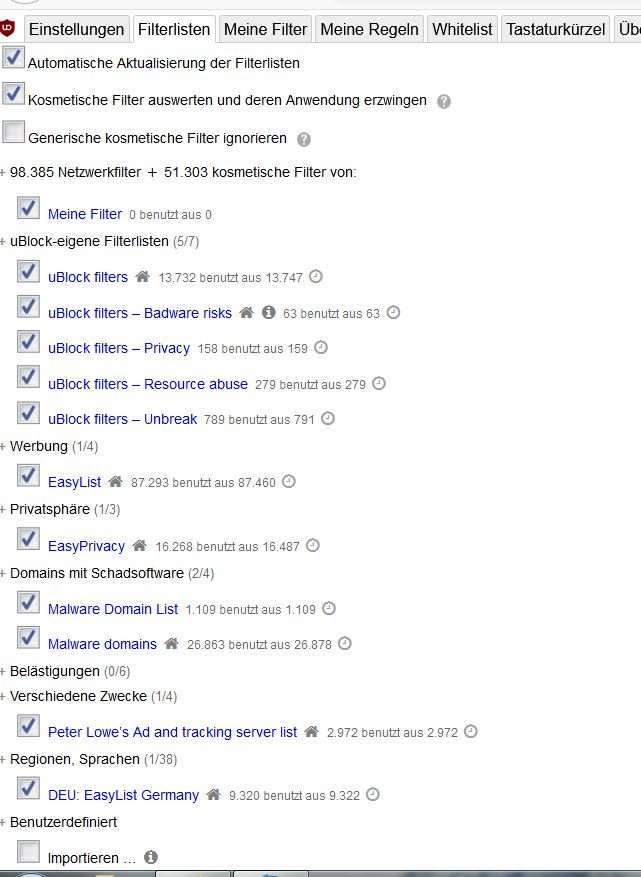 Fx starten..uBlock öffnen...Listen sind aktuell.