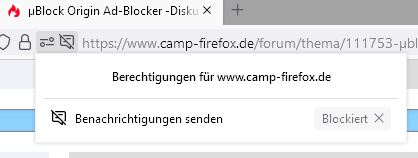 Wie kann ich verhindern, dass uBlock nicht die Benachrichtigungen einer Website blockt? Standardmäßig scheint das ja so zu sein. Ich hatte uBlock kurz deaktiviert und dann kam die Frage der Website, ob ich die Benachrichtigungen der Website aktivieren möchte. Das habe ich angenommen. Nun steht oben links in der Adressleiste "Benachrichtigungen senden erlaubt".