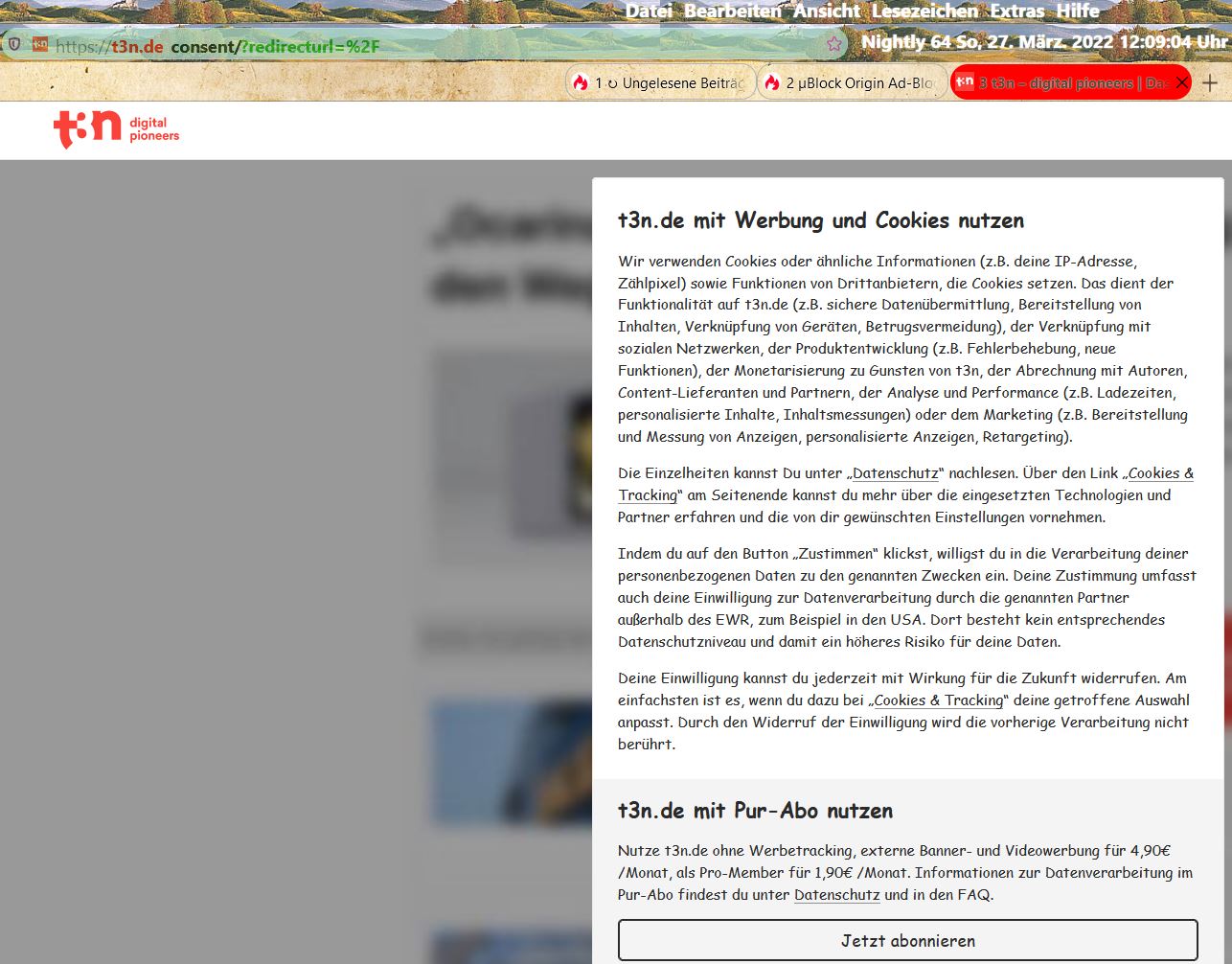 Kann jemand sagen, was bei uBlock eingetragen werden muss, damit https://t3n.de mit uBlock funktioniert?