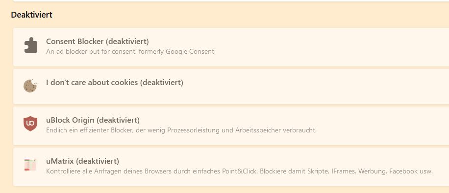 Andere Erweiterungen wie "Consent Blocker" oder uMatrix dürfen nicht aktiv sein